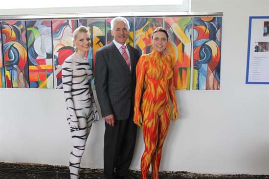 - 25 Jahre Jubiläum: Gottfried Traxler mit zwei Damen mit Bodypainting